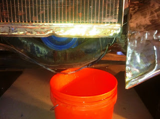 By this time the battery was up so I moved the truck over and got it up on ramps so I could drain the radiator.